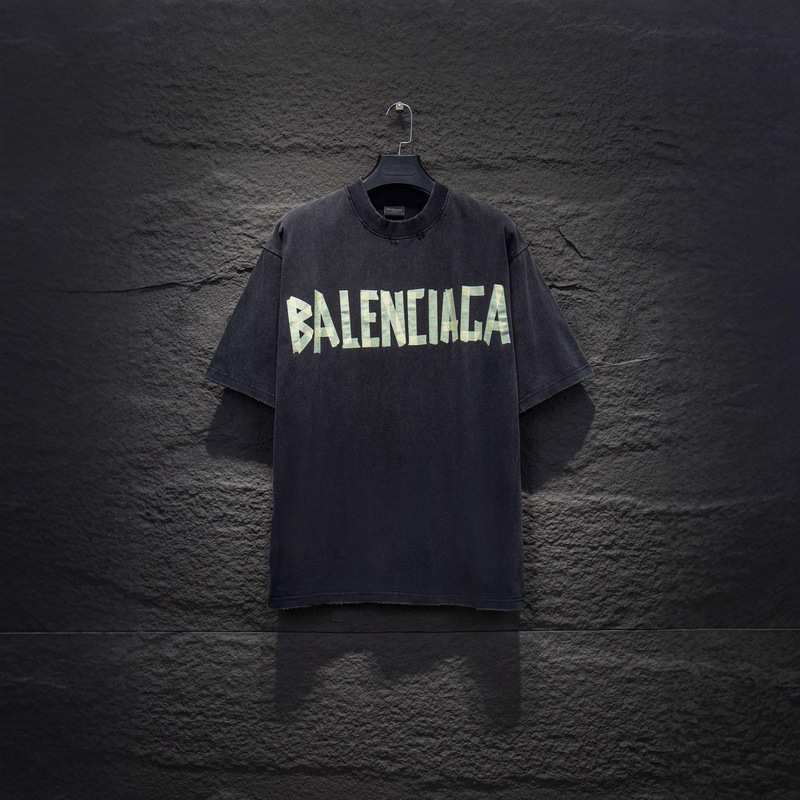 B Brand Trendy Ss26 Classic Paris Tape Logo Tape Distressed Washed Loose Short-Sleeve T-Shirt