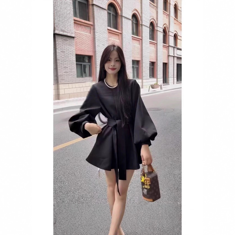 25 Autumn/Winter New Double-Sided Wool Pleated Puff Sleeve Ruched Waist-Cinching Elegant Coat for Women 22153