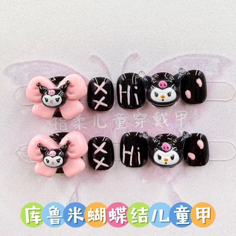 [Rotatable] Children's Handmade Wearable Nails Stereo Sweet and Cool Kuromi Manicure Cartoon Patch Handmade Nails[Rotatable] Children's Handmade Wearable Nails Stereo Cute Melody Manicure Cartoon Patch Handmade Nails