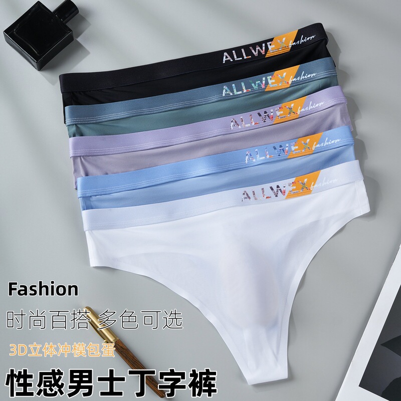 New underwear men's cotton breathable threaded thong young boys U convex sexy comfortable T-shortsForeign Trade Men's Sexy Sports Fitness Letter Thin Transparent Open Hip Ice Silk Low Waist Traceless Triangle Single G-string