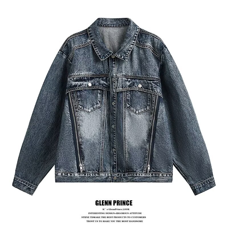 Light Luxury European and American Loose Denim Jacket Men's Shirt Designer Vintage Jacquard Jacket Spring and Autumn Handsome Fashionable Chubby Shirt