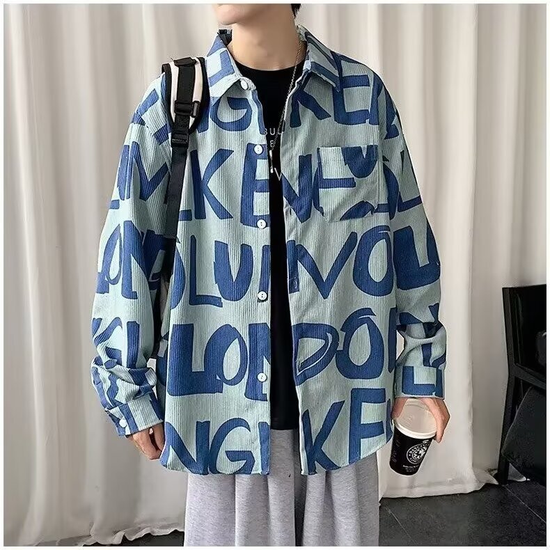 Japanese-Style Hong Kong Corduroy Jacket Men's Spring and Autumn Trendy Ins Long-Sleeve Shirt Men's Loose Casual JacketJapanese-Style Long-Sleeve Corduroy Jacket for Men, Autumn New Outerwear, Hong Kong Style Literary Retro Casual Men's Shirt
