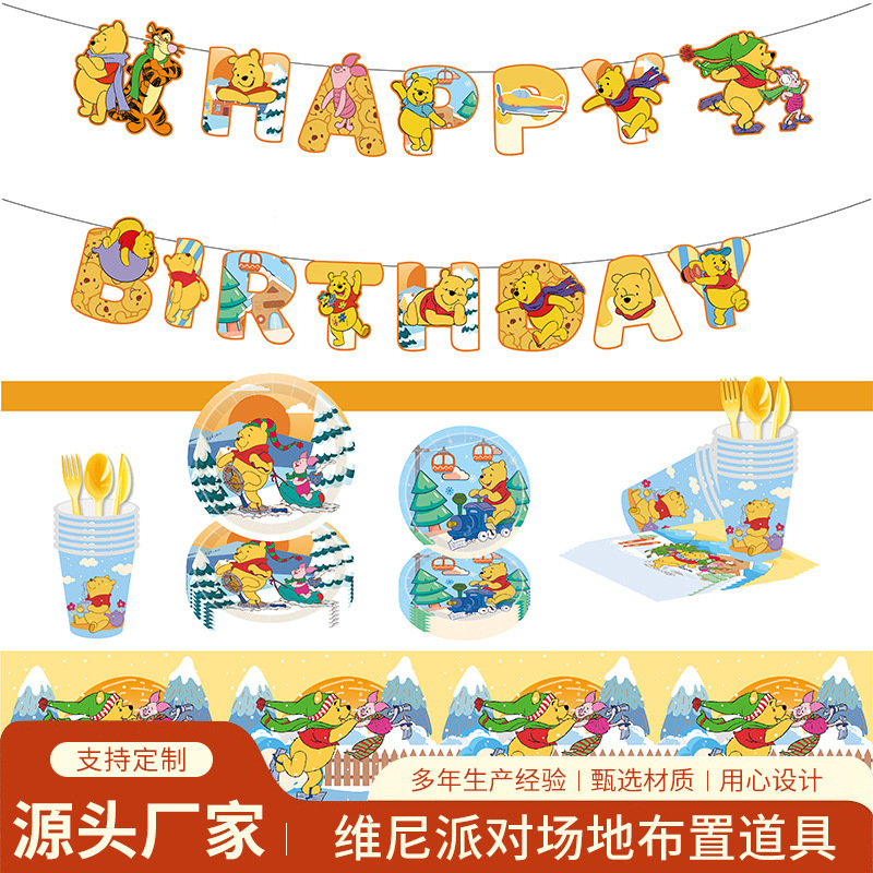 Winnie the Pooh Cartoon Anime Party Paper Plate Party Paper Cup Paper Plate Knife Fork Spoon Tablecloth Banner Birthday DecorationsNew Cartoon Honey Bear Theme Party Paper Tray Winnie the Pooh Bear Party Paper Towel Tablecloth 7 Inch 9 Inch Paper Tray Cross Border