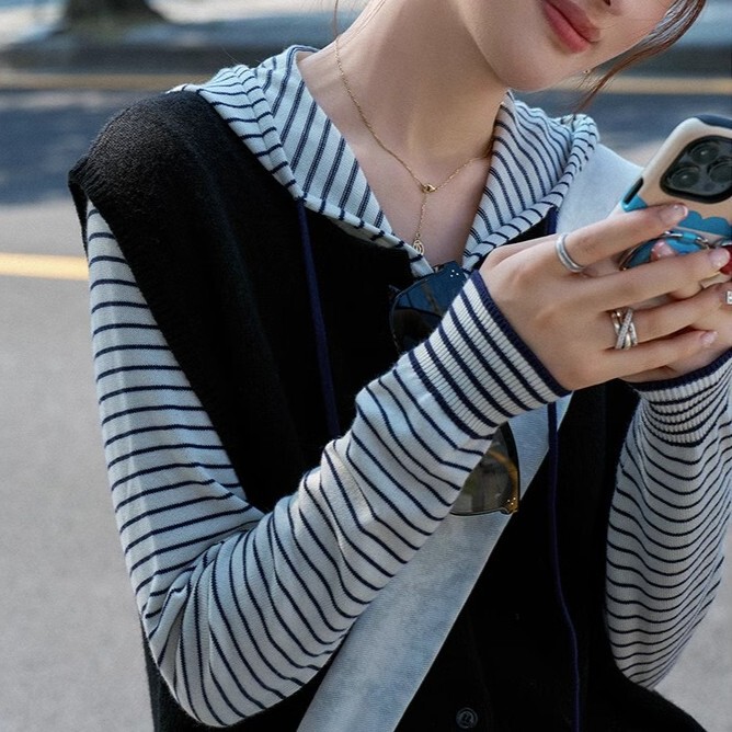"Sketch Workshop" "Opelina" Autumn New Striped Sweater Hood Zipper Ruffled Knitted Cardigan