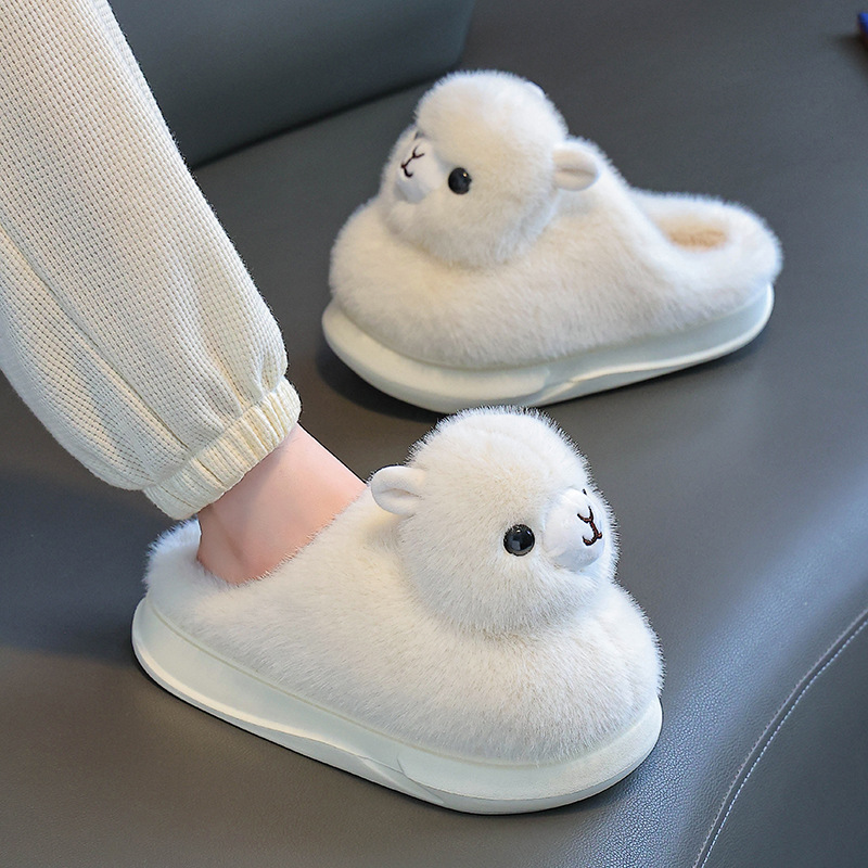 2024 New Winter Cotton Slippers Women's Home Cute Student Dormitory Thick Bottom Warm Cotton Shoes Alpaca Cartoon