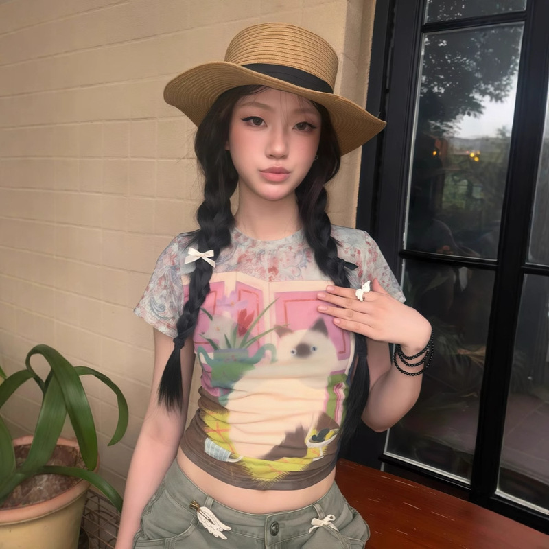 2025 cross-border summer retro mural washed old American street printing 300g high weight short sleeve T-shirt