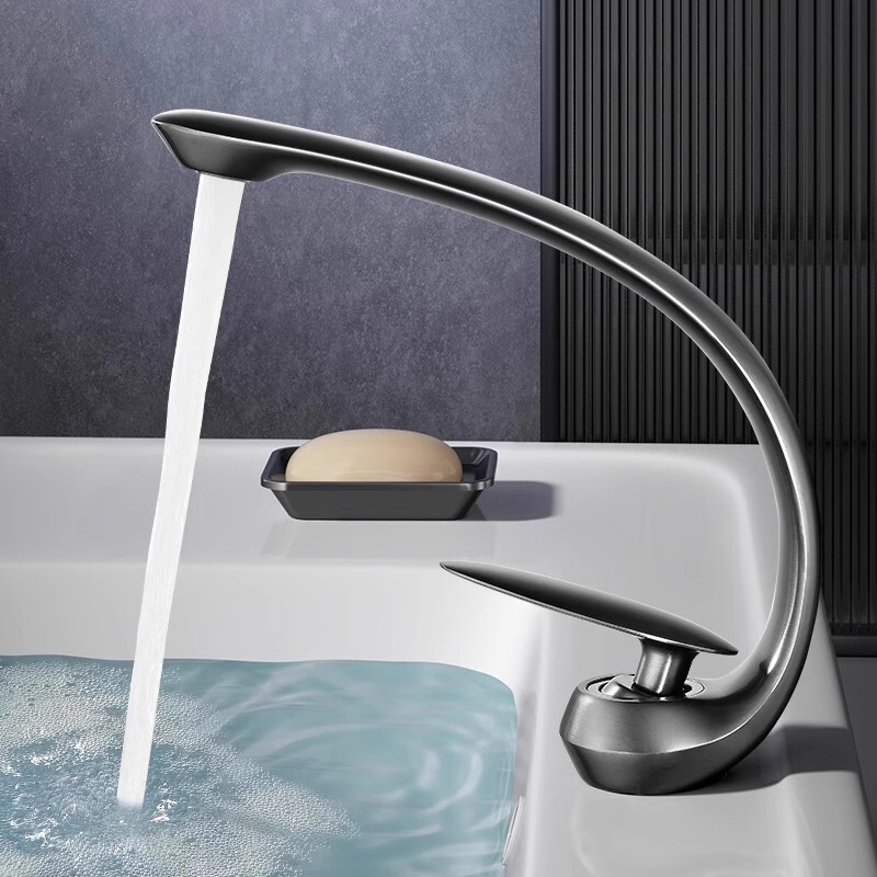 Household Basin Faucet, Washbasin, Bathroom Waterfall-Style Hot and Cold Dual-Use Countertop Basin, WholesaleCross-Border Waterfall European Washbasin Wide Mouth Faucet Black Hot and Cold Bathroom Washbasin Bathroom Home