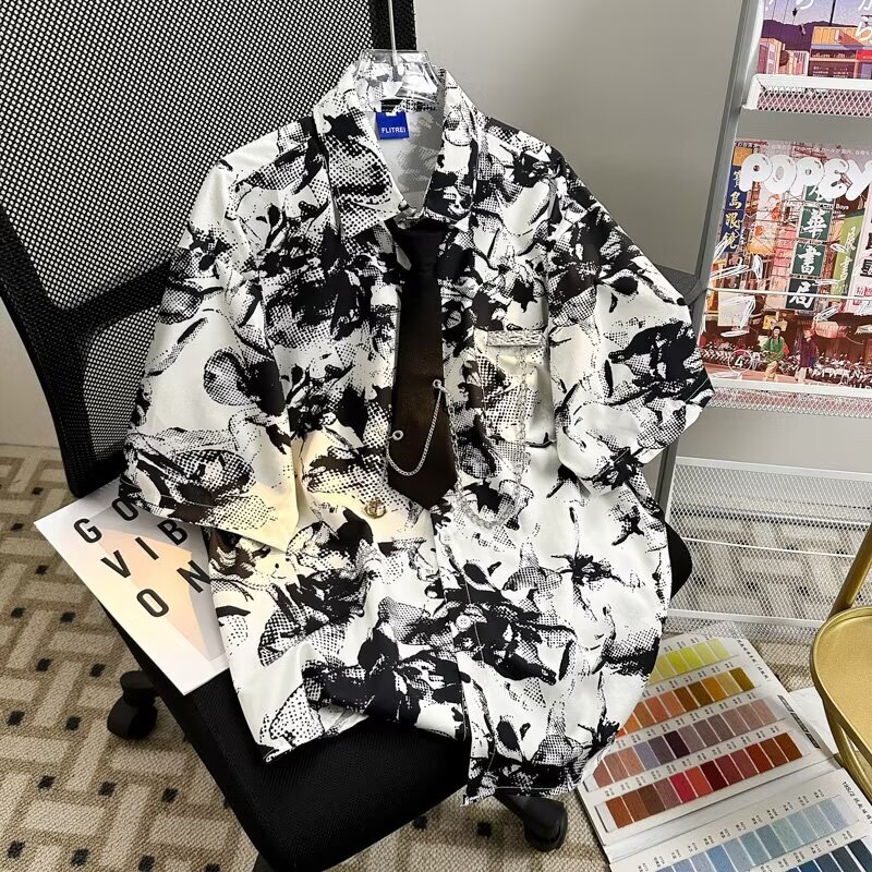Men's Fashionable Pure Ribbon Necklace Loose Short-sleeved Korean Style Men's and Women's Dark Style All-match Seven-sleeve Shirt