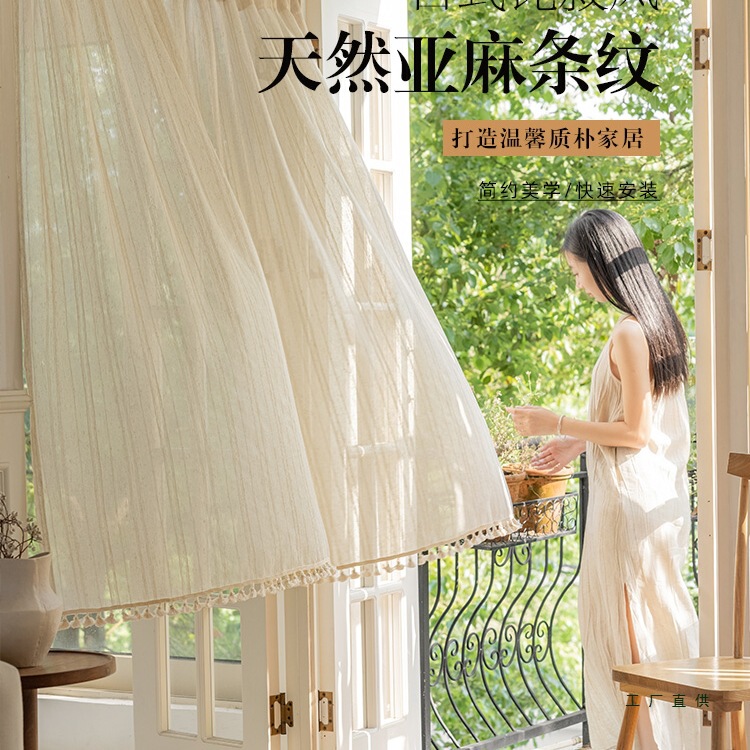 Cross-border Japanese-style Door Curtain Cotton Household Double-sided Short Curtain Partition Curtain Punch-free Rod-wearing Cloth Curtain for Kitchen Bedroom BalconyFabric Windproof, Heat-Insulating, and Blackout Curtains for Bedroom, Balcony, Door, and Kitchen, Oil-Proof and Heat-Insulating Hanging Curtains