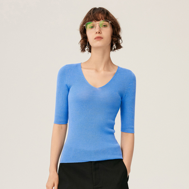 V Neck Worsted 100% Wool Sweater Women's Autumn and Winter Machine Washable Top Pure Color Warm Inner Knitted Wool Sweater