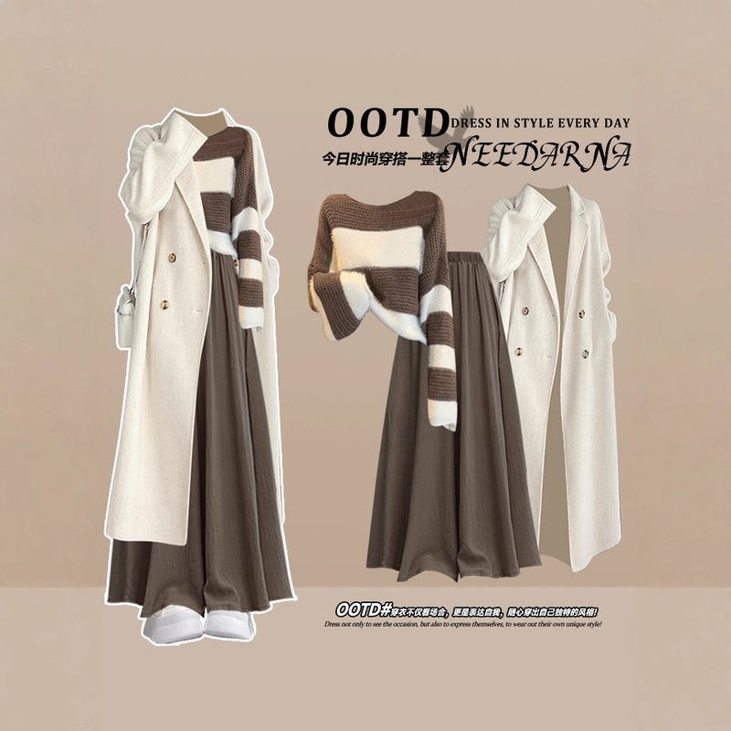 Tall Women's Long French Collar Long Knitted Dress with Extra Long Waist and Slimming Inner Skirt