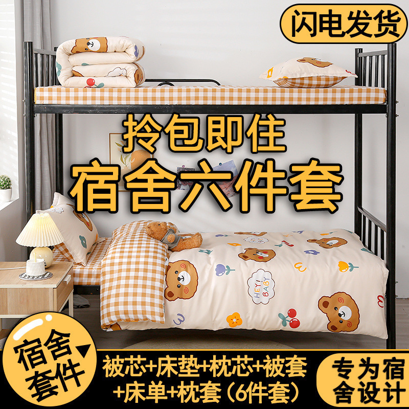 College dormitory three-piece 90*190 bedding quilt pillow mattress bedding six-piece100S Xinjiang Long-Staple Cotton All-Season Pure Cotton Solid Color Simple Single-Piece Bed Sheet, Pillowcase, Fitted Sheet, Pure Cotton Duvet Cover