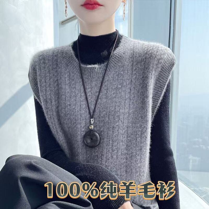 Spring 2025 New Skin-friendly Velvet Crewneck Knitted Vest Cardigan Color Buckle Design Sense Solid Color Sleeveless Waistcoat WomenSolid Color Simple Loose Waistcoat Vest Vest Sweater Women's V-neck Pullover Stacked Knitted Vest Women's Cross-border Foreign Trade