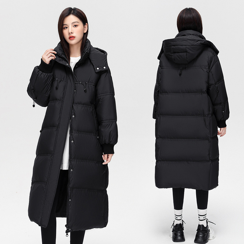 Putian North Face Long Thick White Duck down Jacket for Men and Women, Over-The-Knee, Waterproof, Hooded, Cold-Proof, Japanese and Korean Style Casual