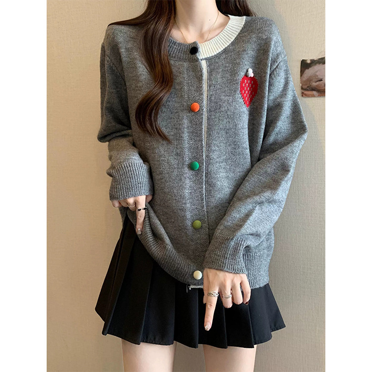 2026 Spring, Autumn, and Winter New Retro Sweet Strawberry Sweater Loose Lazy Style V-Neck Knitted Cardigan Jacket for Women