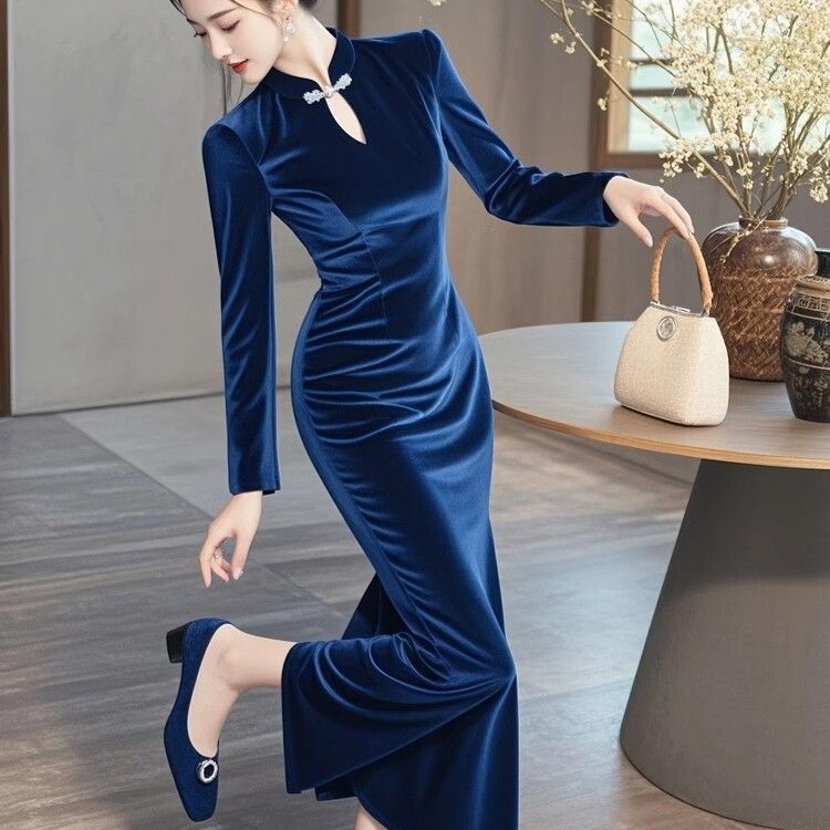 Socialite High-level Hepburn Style Formal Occasion Dress This Year's Fashion Super Beautiful Black Gold Velvet dress
