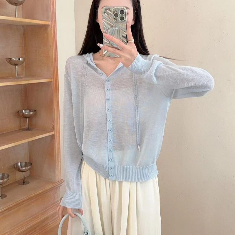Badblood American White Hooded Knitwear Sexy Casual Retro Short Long-Sleeved Cardigan Knitwear Jacket for Women